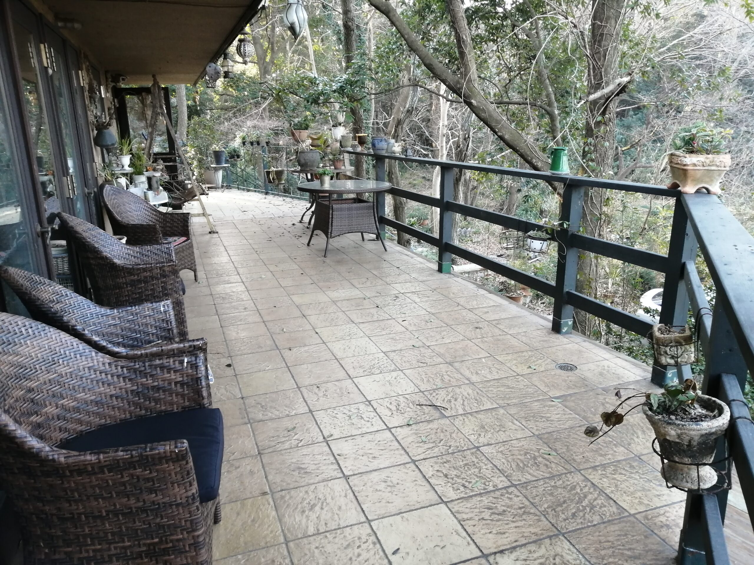 やたら広いバルコニーですが半分屋根がありますので